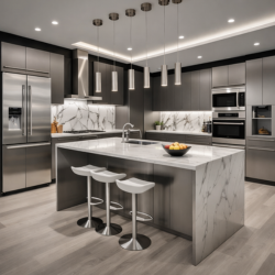 A stainless steel Island Modular Kitchen brings a clean, elegant, and modern feel to your home while offering strong performance for daily cooking. This kitchen design combines premium stainless steel with an Island-style finish to create a bright, smooth, and well-organized kitchen space. A stainless steel Island Modular Kitchen suits homes that value hygiene, durability, and timeless design. Our stainless steel Island Modular Kitchen handles heat, moisture, and heavy usage with ease. Stainless steel resists rust, stains, pests, and wear, making it ideal for Indian cooking conditions. The Island-inspired design keeps the kitchen light, clutter-free, and easy to maintain while adding a premium touch to the interior.